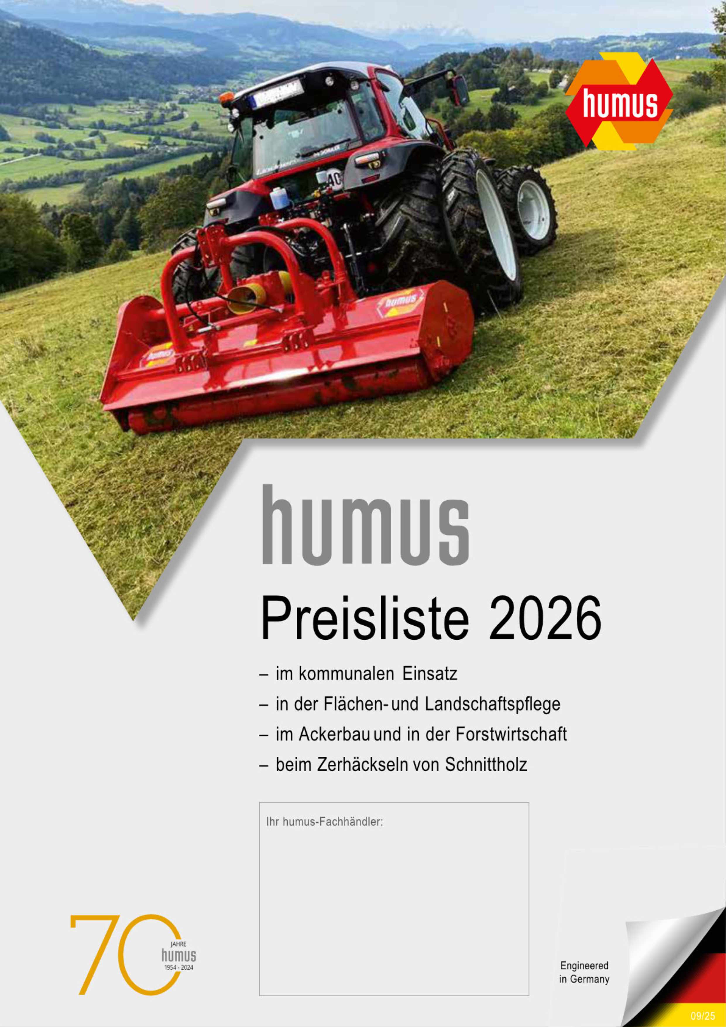 Die unter dem Markenzeichen Humus angebotenen Maschinen sind heute aus dem Obst- und Weinbau, dem kommunalen Einsatz und der Forstwirtschaft nicht mehr weg-zudenken. mehr